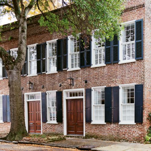 When Becky Hollingsworth and longtime partner Deedie Cooper began dreaming up designs for a home inspired by Charleston’s rich history, they didn’t go the predictable row-house route. Instead, the creative retirees took their architectural cues from the 19th-century cotton warehouses that dot the peninsula. Boasting high ceilings, exposed brick walls, and industrial ironwork, these historical beauties sprung up to support the city’s then-booming cotton trade; many have since been retrofitted into rustic-cool hotels, condos, and restaurants. “We loved the idea of incorporating those industrial elements to make it feel like a working man’s house,” Cooper explains. Add to that décor that draws from Hollingsworth’s collection of vintage maritime memorabilia (sailor’s uniforms, centuries-old life preservers, Navy flags, you name it), and a clear vision of their dream coastal abode began to take shape.