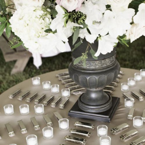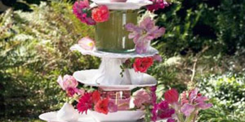 Pile a pretty arrangement of summertime blooms on stacks of your favorite serving ware.