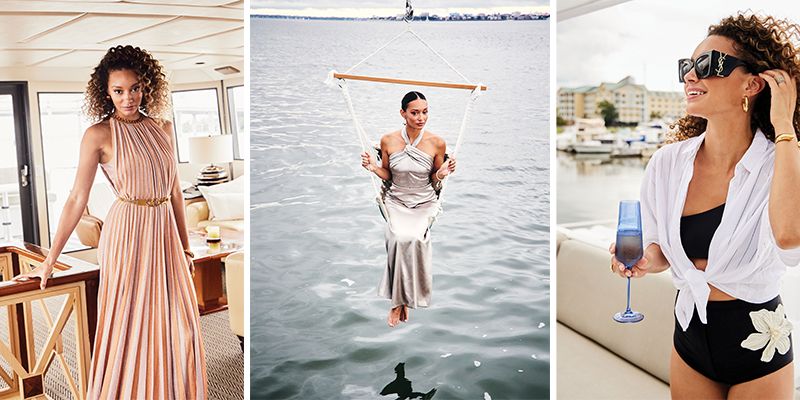 Be ready for days on deck and nights on the town with these luxe looks modeled aboard the Miss Emily