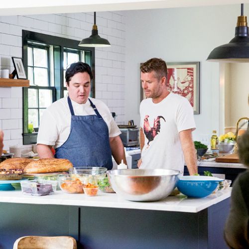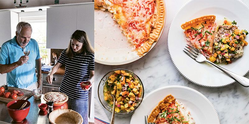 High Wire Distilling Company owners Scott Blackwell and Ann Marshall prepare a summer feast of grilled fish, tomato...