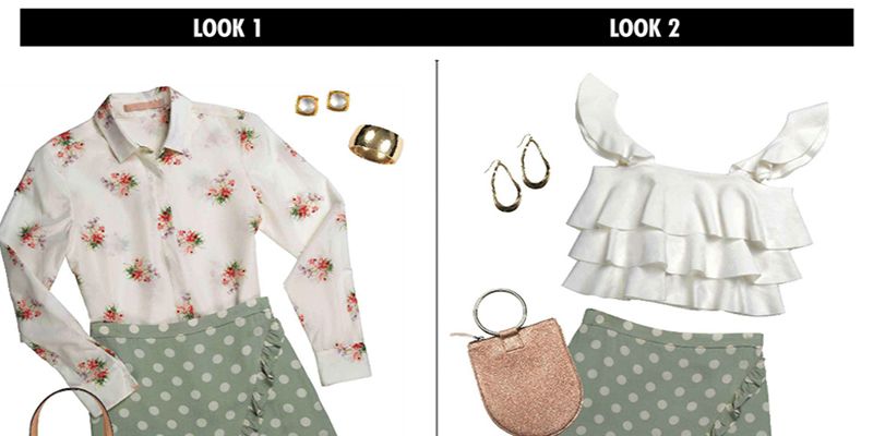 Add polka dots and ruffles to the wrap-skirt style, and you have a piece polished enough for work and flirty enough...