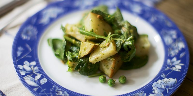 Lighten up your Memorial Day spread with Harbinger Cafe’s spin on the classic side dish with sweet peas and basil-...