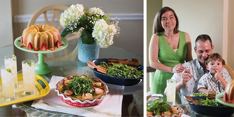 Pastry chef Andrea Upchurch makes an easy weekend meal of shrimp-and-bacon quiche, spring onion salad, lemon “...