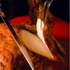 Though the kitchen has been buzzing for much of the morning, the activity level rises as Frank pulls the golden turkey from the fryer and sets it inside to rest. Son-in-law Martin Antonetti has been designated the turkey carver, and he calls over his oldest, Kevin, to show him how to slice the bird. Hoping to steal a bite, some of the children zone in, sneaking small pieces of the moist bird. Charlotte, sister Rita Worthy, sister-in-law Pearl Ascue, and niece Christi Ascue bustle in and out of the dining room with steaming dishes of okra soup, candied yams, oyster pilau, collards, and Hoppin’ John. Before folks dig in, Charlotte draws everyone into the dining room for to say grace, with many thanks for the blessings given her family and for being together on such a special occasion.