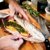 Lata begins deftly carving chilled raw fillets of locally caught wahoo into cubes for a crudo that he’ll serve tonnato style. Once again, the importance of careful sourcing becomes clear. “Wahoo is a great fish, but it can dry out pretty quickly when cooked,” he explains. “So when you buy it fresh from a reputable fisherman and know how long it’s been out of the water, you can serve it raw.”
