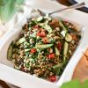 Alongside, the chef offers up a colorful platter of farro succotash. He sources the farro piccolo from South Carolina’s Anson Mills, the only grower of the heirloom Italian spelt wheat in the country. Lata tosses the nutty, toothsome grain with sautéed fresh field peas, butter beans, sliced baby zucchini, and cherry tomatoes. “We use farro from Anson Mills year-round,” Lata says. “It’s easy to adapt at home, too, because you can choose whatever vegetables are in season and serve it hot or at room temperature.”