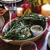 Ellen and Michelle share turkey duty, producing a bird notable for its moistness and complemented by Michelle’s crispy corn-bread dressing. Lata’s bread-crumb-topped turkey liver and rice-stuffed sweet onions bring a modern twist to that old-fashioned favorite flavor found in giblet stuffing. And as Jeremiah Bacon puts only a whisper of cream in his scalloped root vegetables, he renders the dish holiday worthy yet not overly heavy. His long beans with brown-butter emulsion raise the status of the obligatory green vegetable. Ever the gifted cook, Ellen has a frangipane-filled pear and cranberry tart and a pumpkin roulade with toffee and caramel waiting in the wings for dessert.
