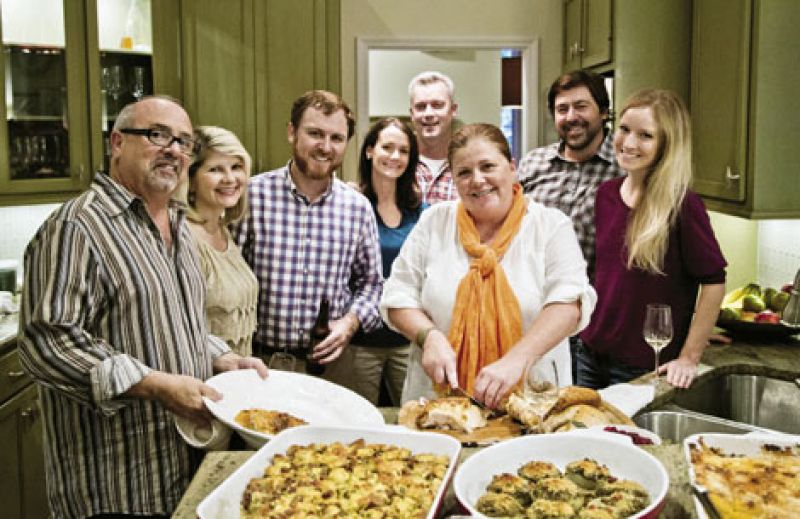 “Welcome to our Home!“ announces the Lowcountry’s own Mr. Hospitality, Charleston Grill G.M. Mickey Bakst, as he throws his arms open wide in his customary all-encompassing embrace. In addition to being the most welcoming front man in town for the last nine years, Bakst has arguably been the most charitable, organizing huge fundraising events after the tragedies of 9/11, Hurricane Katrina, and the deaths of the Charleston Nine, as well as working hard for Crisis Ministries, East Cooper Community Outreach, and Meals on Wheels with the support of Charleston Place Hotel. Mickey and his wife Ellen’s guests for this “Thanks for Giving” potluck are close friends: Charleston Grill’s Michelle Weaver, Grill server Bryan Austin, FIG and The Ordinary’s Mike Lata with wife Emilee, and Oak and The Macintosh’s Jeremiah Bacon with wife Liz—“chefs who all are an important part of the charitable community here, each offering their services and skills to numerous organizations,” says Mickey.