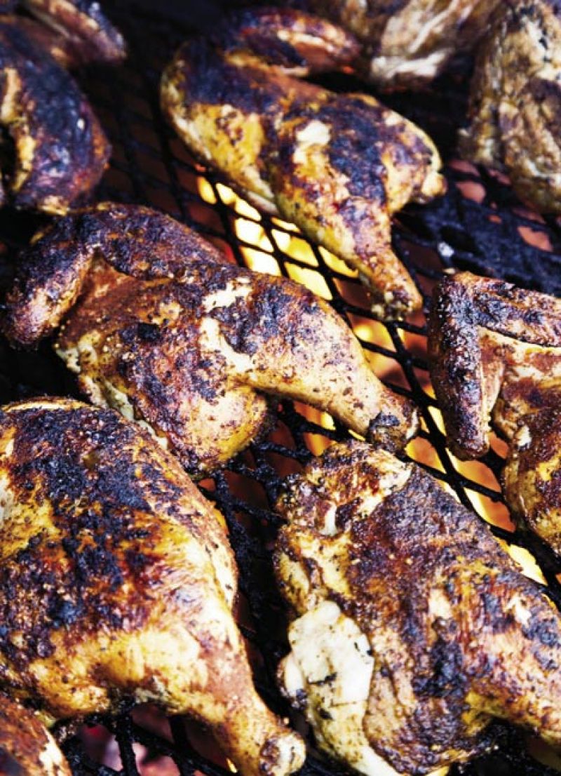 Note: When serving chicken to a group, especially when other meats are involved, plan on one whole bird for four people. Have your butcher split the bird and take the backbone out.