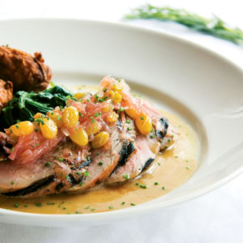 Create a basic brine by bringing water, salt, and sugar to a boil in a large pot. Stir to dissolve. Remove from heat and add herbs and garlic. Let brine sit at room temperature until it is cool to the touch, then place pot in refrigerator to cool completely. Add pork. Refrigerate for two to three hours. (Each tenderloin should brine for two hours per pound). Remove the pork from the brine and rinse lightly. Dry with a clean towel and grill over medium heat to desired doneness.