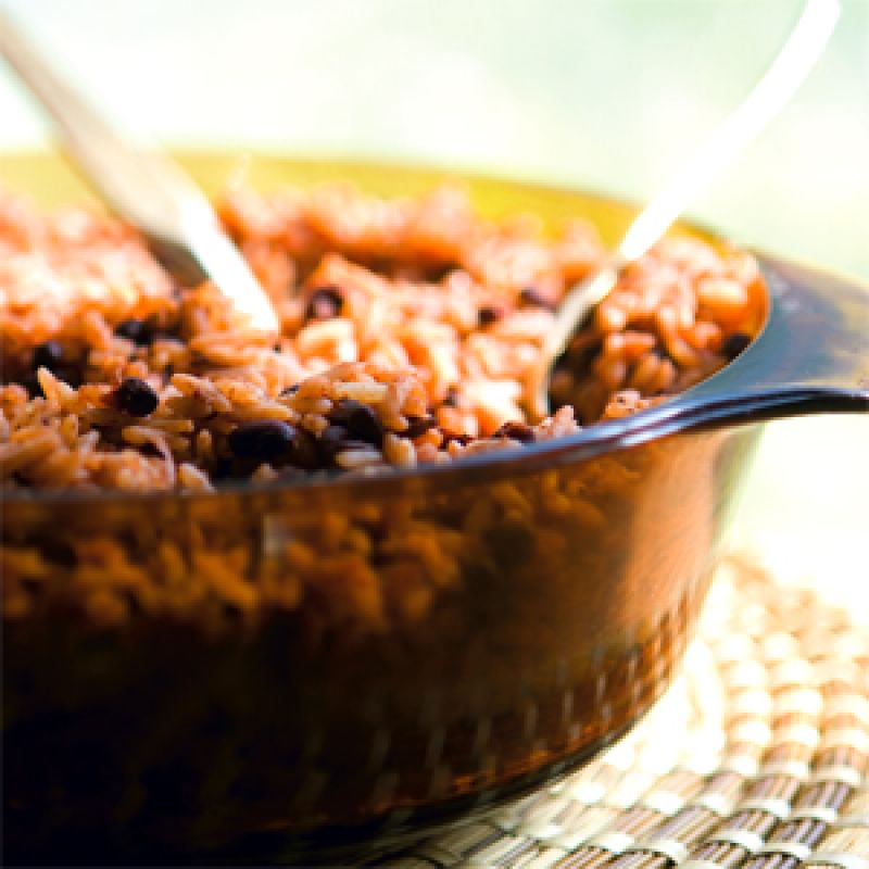 Combine ham hocks and water. Boil for two hours and 45 minutes. Add peas, onion, black pepper, and thyme. Cook for 45 minutes to an hour, or until tender. Add rice, stir, and simmer over medium heat for 20 to 25 minutes or until rice is tender.