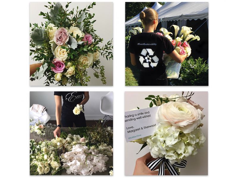 Sarah Bella Slagsvol and rEvent volunteers gather flowers from weddings and events; rearrange them into “bedside bouquets”; and deliver them to hospitals, shelters, and more.