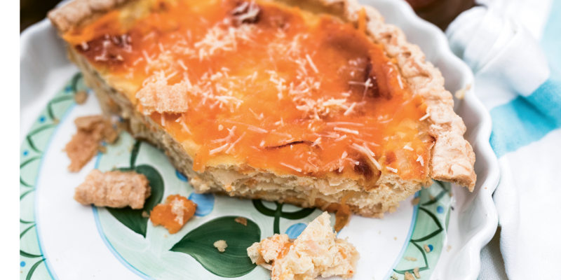 Pastry chef Andrea Upchurch makes an easy weekend meal of shrimp-and-bacon quiche, spring onion salad, lemon “...