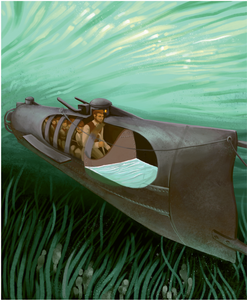 CRAMPED QUARTERS The Hunley was only 39 feet long, 4.5 feet high, and 3.5 feet across. She carried a crew of eight—seven to turn the hand-cranked propeller and one to steer the boat. Each end of the craft was equipped with water ballast tanks that could be flooded via valves (to lower the sub) or pumped dry by hand (to raise it).