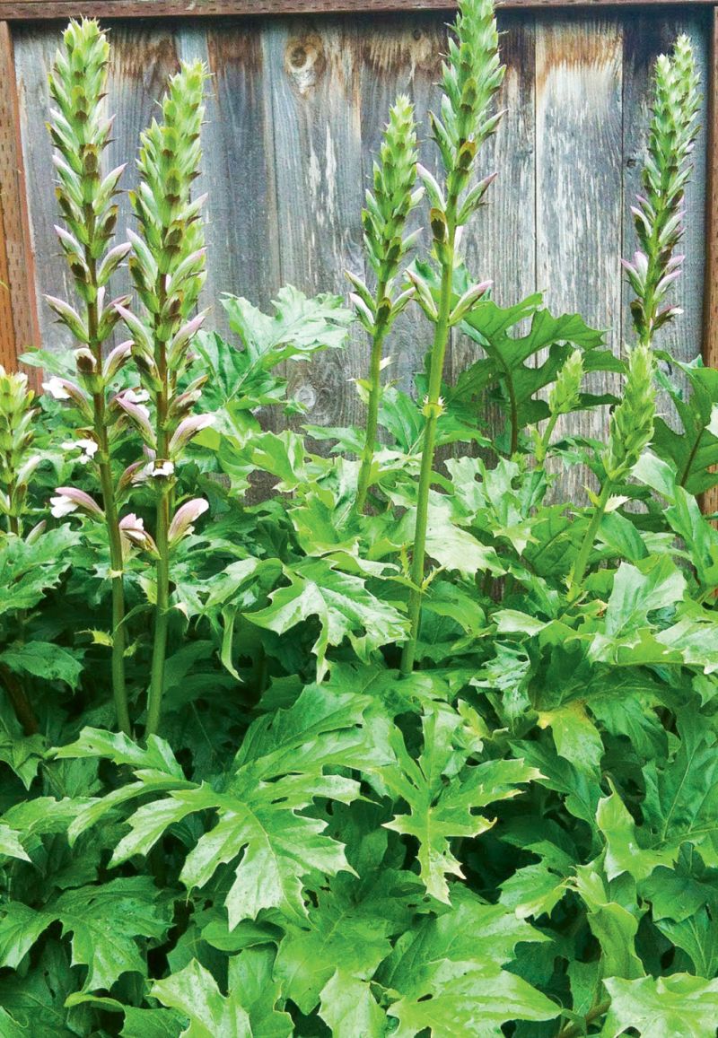 If you’re planting on a larger scale, the giant leopard plant (Farfugium japonicum ‘Gigantea’) and bear’s breeches (Acanthus mollis ‘Oak Leaf’) deliver beautifully structured foliage and three-foot-tall bloom spikes, working well as a focal point or a backdrop in the garden bed.