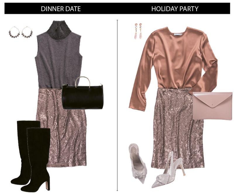 Sequins have serious star power right now. While they can get glam in a hurry, there’s no need to shy away from more casual looks—just add accessories with subtle luster