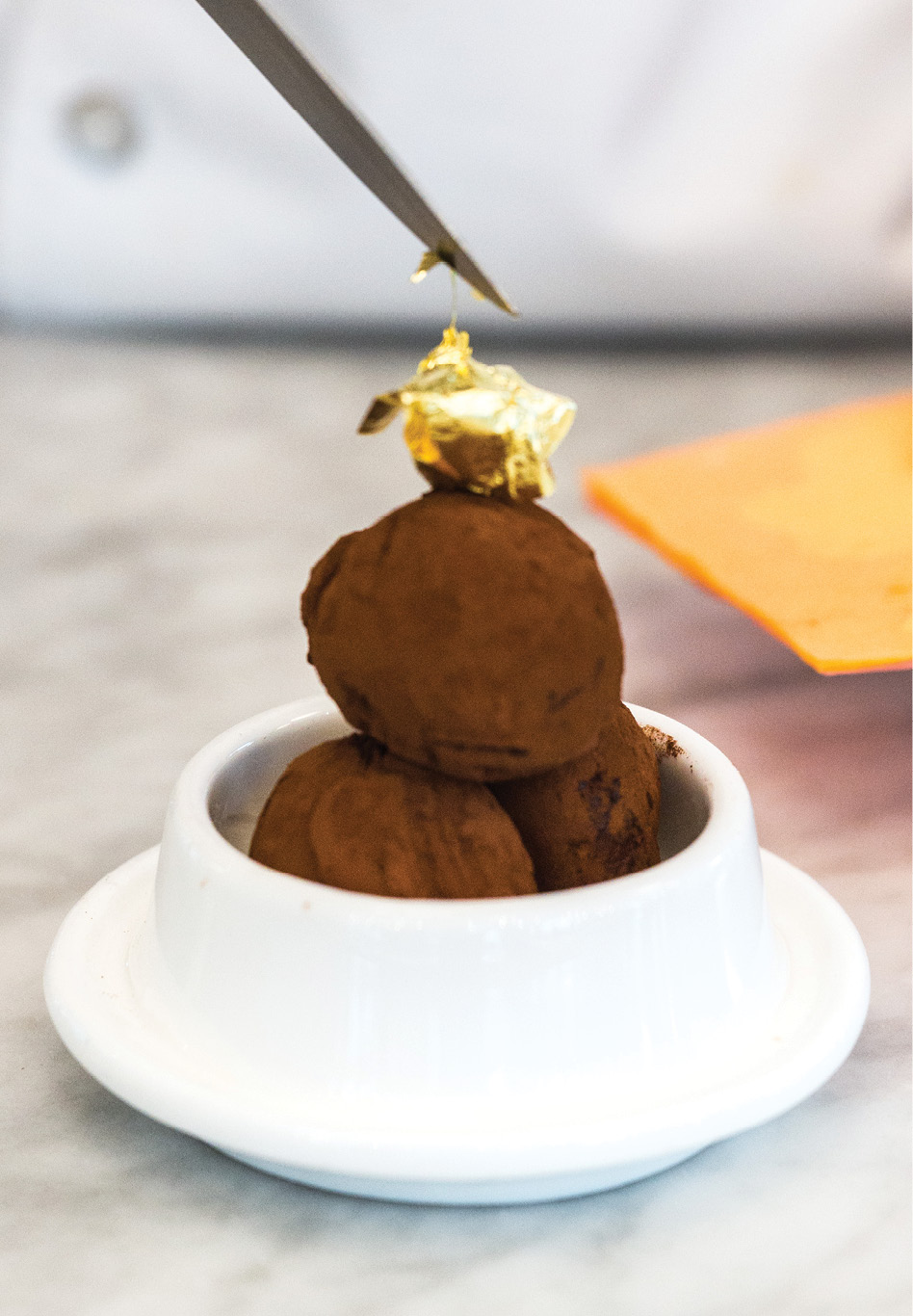 ■ Numbers Game: When choosing the ideal cacao percentage, Fünfrock says the ratios are up to you. He combines a 58% cacao dark chocolate with milk chocolate for a little added sweetness. “It all depends on what you want to achieve and your taste preferences.”
