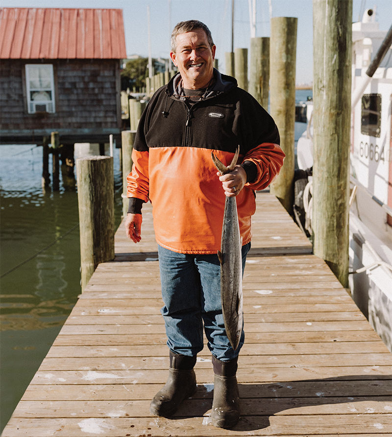 Still there was high school to finish, so Mark was back to the classroom that fall. Graphing numbers replaced gutting fish, literature for logbooks when tragedy struck. “On November 20, 1978, my dad died on the boat,” Mark says. Gerald had a heart attack, and they couldn’t get the boat back to shore in time to fetch medical help. His brother, Michael, took over the business, and a year later, moments after his high school graduation, Mark turned in his cap and gown, boarded the Bandit II with his brother, and headed to North Carolina to fish off the Wilmington coast. He’s been at sea ever since.