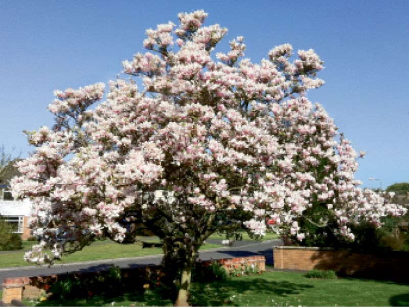 A deciduous shrub or tree that reaches up to 25 feet at maturity, it loses its leaves during the winter to reveal a sleek, silvery-grey, multi-stemmed branch structure. In late February and early March, fragrant tulip-shaped blossoms, ranging from white to deep purple, burst forth on bare stems and dramatically announce that spring is on its way.