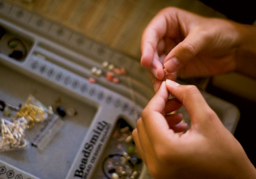 As brunch guests arrived at the house, Sally casually mentioned to them that there was a jewelry boutique in the family room for those looking for holiday gifts. Necklaces, bracelets, and earrings (priced from about $10 to $30) sold quickly, with only three left in stock by day’s end. Word of mouth took over thereafter, and Sally started creating pieces on commission for her relatives, family friends, fellow students, and the like. “I usually tell myself that I am getting things as gifts,” says repeat customer Lucille Keller, “but often find that I can’t part with them. Because I don’t have daughters, I’m at a loss when I want to select jewelry for young women. Sally is great at telling me which pieces would appeal.”