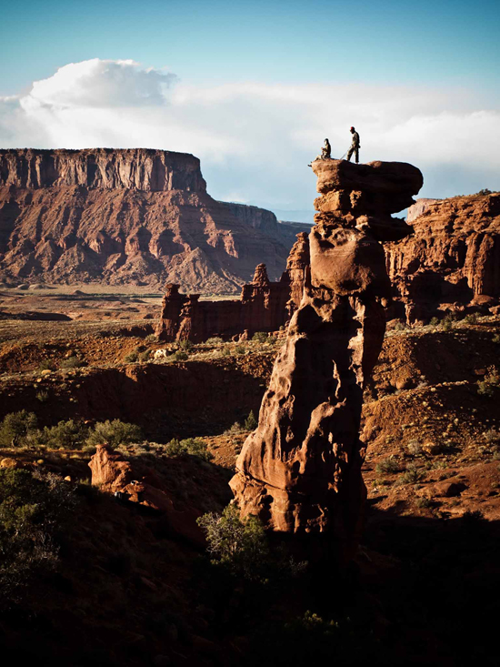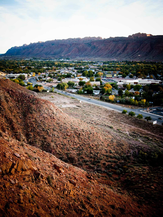 Our driver and guide for this trip, Clayton Scrivner, clearly knows the lay of the land, and our conversation doesn’t stray far from the raw scenery and how to play in it. A 30-something with a mischievous grin, he’s telling stories of off-the-groomed-trails snowboarding, mountain-bike treks, and multi-day raft trips on unpopulated stretches of white water. He knows our destination of Moab (population 5,000) pretty well, along with favorite spots in the parklands that surround it, including the famed Arches and Canyonlands national parks. We soon realize that getting to Moab before dark is looking unlikely, and Scrivner asks if we’d like to stop about 30 miles from town to catch the sunset at Dead Horse Point State Park. “It’s worth it,” he says. We make the detour.