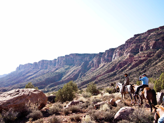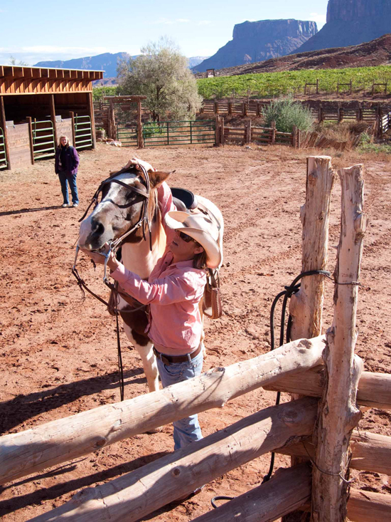 We ride for a few hours along a creek, through narrow ravines, and past posts still bearing bits of hardware from when they were hung with telegraph wires. The ascents and descents are sometimes steep and rocky, the kind of ride you know you’re going to feel later in your hip bones. Back at the barn, I hop off aware that I’ll have a Western saddle swagger for the rest of the day. After a bowl of hot chili for lunch, I ease downstairs to the basement of the Red Cliffs Lodge to check out the display rooms and cases of memorabilia from dozens of movies and films shot in the area, including the 1950 classic Western Rio Grande with John Wayne, Thelma and Louise, and a Bon Jovi video. Obviously, directors love to put this landscape on the big screen.