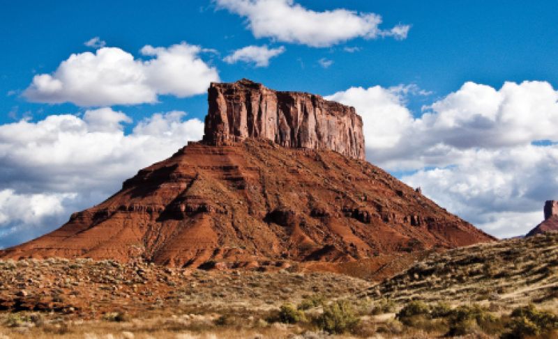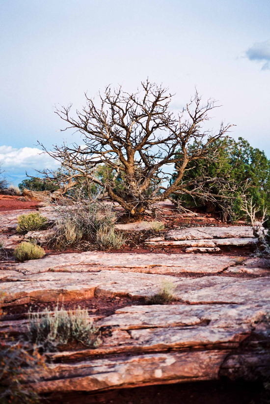 That night, after our double-adventure day, we tuck in at the Best Western Canyonlands Inn in the very center of Moab’s frontier-style downtown. The main street is lined with roadhouse bars, cafés, a couple of bookstores, gift shops (think: turquoise jewelry), and art galleries. There’s an Asheville-like quality to the place, except it’s even more outdoors-focused, with most everyone in gear—backpacks, hiking shoes, NorthFace jackets—for some sort of adventure. The town is our base over the next few days, and we stop for meals at the funky Eklectica Café and on the patio at Miguel’s Baja Grill and get bag lunches to go from the busy Love Muffin Café, where the staff T-shirts read, “Not too tough for The Muff.” We catch an airboat ride down the Colorado (in lieu of low-water rafting) and look up at the canyon walls from the water, watch dozens of “crack climbers” scaling the craggy rock faces in the Indian Creek Recreation Area, and have a picnic under the twisted branches of scrub pine trees at Elephant Hill in Canyonlands.