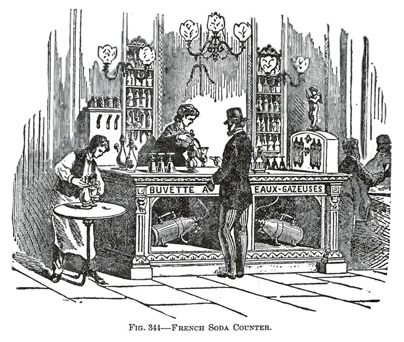 At the time, artificially bubbling water (as opposed to the naturally sparkling spring water found in 18th-century spas in Saratoga, New York, and western parts of Virginia) was still something of a novelty. In 1767, chemist Joseph Priestly had discovered a method of carbonating water artificially while experimenting at a brewery in Leeds, England. Soon, Americans approximated the effervescence of spa spring water, creating soda water. It was just a matter of time before confectioners began infusing it with fruit-flavored syrups, producing a more agreeable product than the sulphurous fluid that bubbled from the ground.