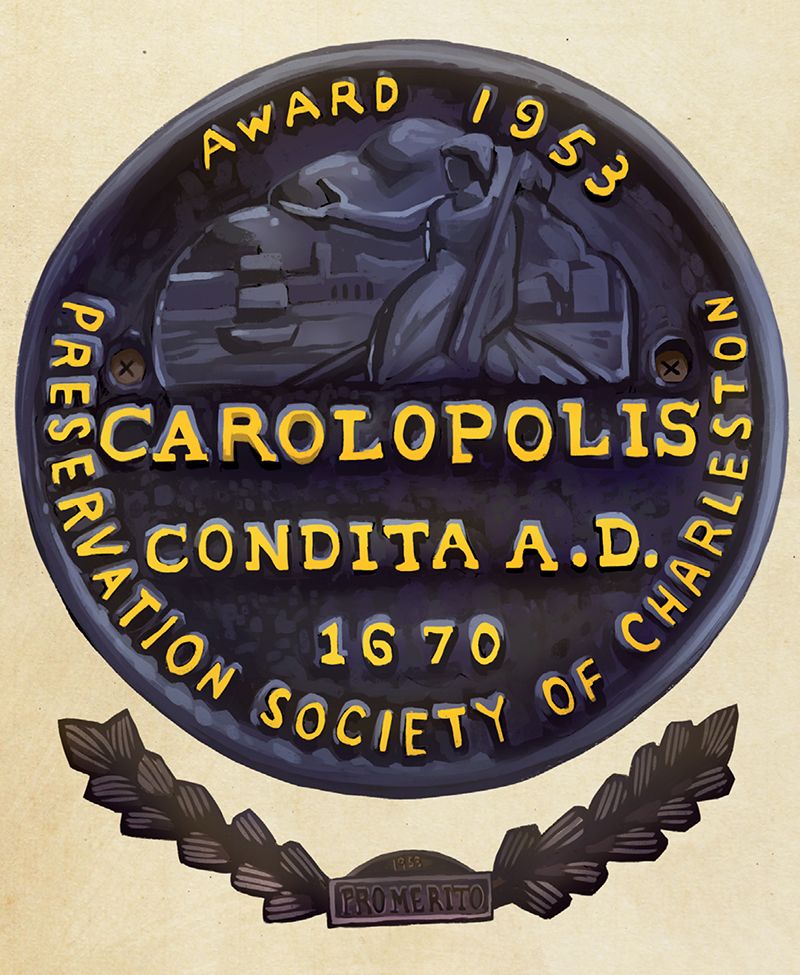 They’re affixed to structures throughout the Historic District and beyond: circular plaques mingling English and Latin around an engraving that resembles the City of Charleston’s seal. The image reflects our metropolis’s motto, Aedes mores juraque curat, which means, ”She guards her buildings, customs, and laws.” And it’s for the “guarding” of buildings that the Preservation Society of Charleston grants Carolopolis Awards; it’s bestowed 1,400 thus far and will add a dozen more to the count this January 25.