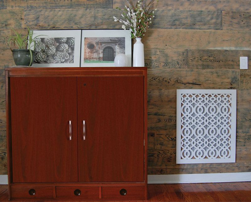 Stellar Air’s laser-cut air vents can be painted or stained to match decor.