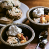 For dessert, Scott taps into his baking talents to make blueberry biscuit shortcakes topped with peaches and cream. He first freezes fresh blueberries overnight, then mixes the berries into the batter, yielding vibrant pops of color and flavor without the purple bleed from the juices. Once out of the oven, the dense, scone-like pastries are served with the stone fruit slices and soft-peaked whipped cream—a treat cool enough to stand up to the heat.