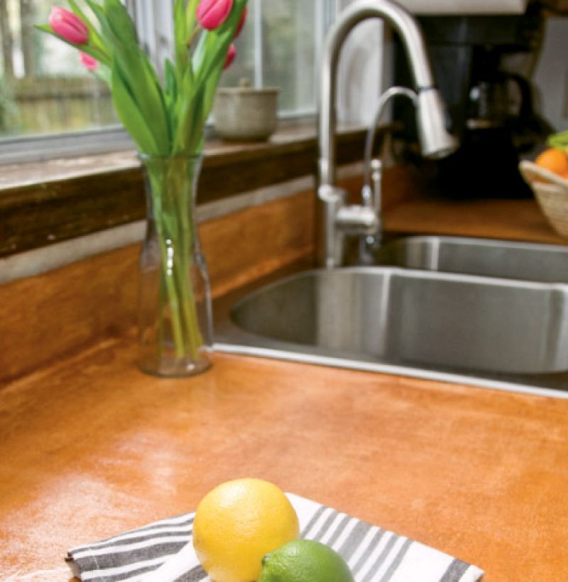 Eco-friendly resurfacing mix Deco-Poz is a DIY alternative to expensive counter upgrades. Apply to dated linoleum (or drab fireplaces, unsightly desktops, etc.) for a sturdy—and striking—home improvement. Available at DwellSmart (Check out their how-to at Youtube.com/user/dwellsmart.com)