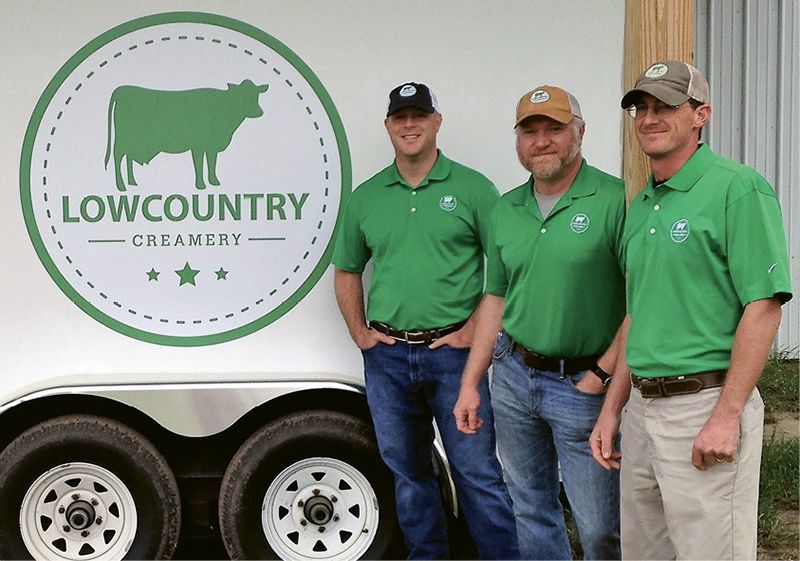 To launch Lowcountry Creamery, Myers teamed up with fellow Clemson graduates and childhood friends Kent Whetsell and Josh Brooks. Each brought different skills to the table: Myers and Whetsell were primed to run the dairy, as both grew up on farms and were educated in animal science; Brooks’s finance studies helped in crafting a business plan for the creamery, which opened in the spring of 2015.
