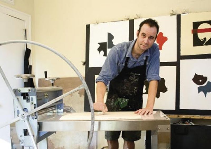 For his next exhibit, “Theory and Practice,” at Corrigan Gallery from January 18 to February 16, the artist is focusing on experimentations with abstract printmaking. For example, he discovered that he could control and cut Plexiglas in any shape he desired, leading to a series of colorful, overlapping shapes and patterns created on his etching press. Local designer Kathleen Rivers calls it “inkblot gone to the top,” praising Ailstock’s ability to balance an abstract piece’s yin and yang while confidently leaving large spaces blank.