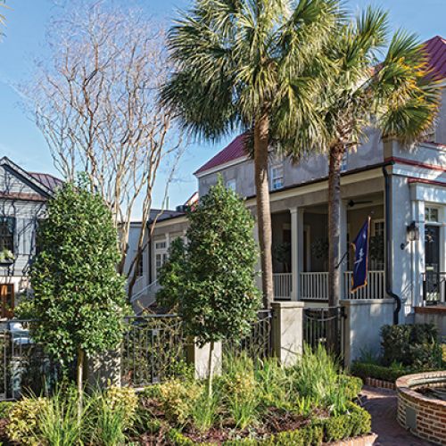Come Christmastime in Charleston, holiday partygoers don their most festive frocks—and the homes playing host to the merriment are no exception. Passersby ambling along Queen Street might pay particular mind to John and Will Hardee’s handsome Charleston single, meticulously clad in wreaths and bows, winding garland, and dazzling string lights. And the eye-catching exterior is just the beginning. Inside, halls are decked with eight Christmas trees festooned by John, owner of design firm Kenric Hardee, to suit specific rooms of the home, from stately to nostalgic to downright opulent.