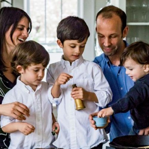For most on-the-go parents, a sit-down meal with kids and grandparents only happens on occasion, but MariElena and Joe Raya roll out such evenings regularly. “We make a full dinner every night,” MariElena says. “It’s not just about the eating; it’s about the cooking, too. We open wine and talk about the day.”