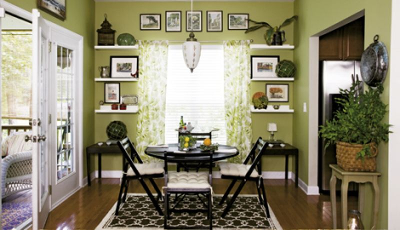 "Since we finished this room, we find ourselves staying at the table long after the plates are cleared,” says Charleston native Evita Smith. “That’s when you know you have a space that works.” To get there, she started with a new paint color on the walls (“Wasabi” by Valspar) that perfectly suited drapery panels she already had. From there, Evita turned to heirlooms she’d collected through the years. “This made the project almost effortless,” she adds. “The other elements just fell into place.”
