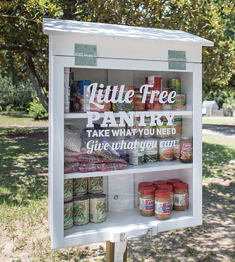 By fall, 20 Blessing Boxes will be scattered around the Lowcountry, and now, says Dahlheim, the best way to get involved is by helping to tend an existing pantry. “If there’s trash inside, take it out. If a fire ant hill is close by, apply ant killer,” she suggests. And of course, keep the water coming; someone near you is in need.