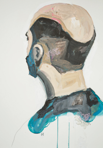 After a year or so of pounding the pavement and travels to Paris, Hart was ready to paint again and realized that he “might as well do exactly what I want.” He started with portraits and later began experimenting with daguerreotypes. “‘What’s past is prologue’—that’s the idea I’m playing with,” Hart explains. “I’m taking an antiquated, formal photographic process and translating that into a loose abstract painting with allusions to street art. That tension intrigues me.”