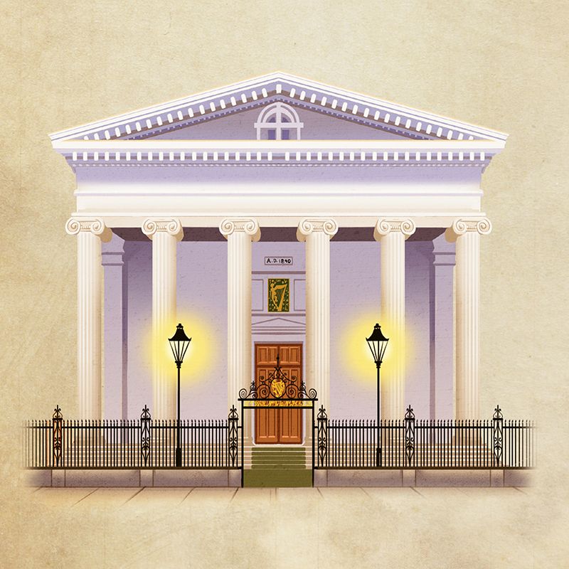 On March 18, 1839, the Irish organization known as the Hibernian Society laid the first cornerstone for a new hall at 105 Meeting Street. The building has survived fire, war, the 1886 earthquake, politics, and innumerable St. Patrick’s Day celebrations. Included on the National Register of Historic Places, it reigns today as one of the most notable examples of classical architecture in Charleston. In addition to hosting Society gatherings, it’s among the city’s most well-loved venues for weddings and events