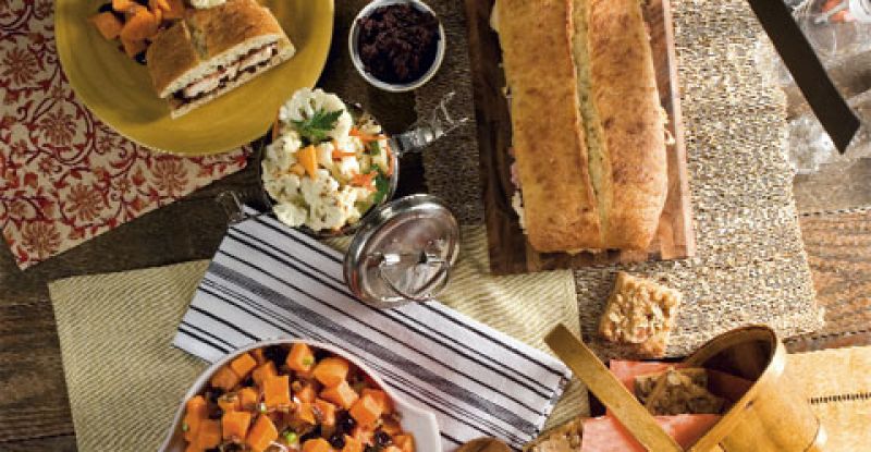 Whether it’s a garden picnic or a tailgate gathering, outdoor dining is a must in our temperate climate. To keep things simple, we came up with four delicious dishes that can be assembled in advance and served at room temperature. Dining in the Great Outdoors Keep these food safety tips in mind, particularly if you’re going further than your own backyard • Perishable foods (like our chicken sandwich) need to be kept cold, as bacteria grows best at temperatures above 40ºF. Pack food in shallow containers, then place in a cooler so that ice surrounds all sides. • Don’t keep leftovers if the food has rested at temperatures above 40ºF for more than two hours. Packing a refrigerator thermometer in the cooler makes it easy to monitor temperatures. • Cover your outdoor spread with cheesecloth or food domes to ward off bacteria-bearing insects. • If you’re eating at a picnic table, pack disposable wipes to clean it of bird droppings and other contaminants. Hand sanitizer is a must if you won’t have access to soap and water.