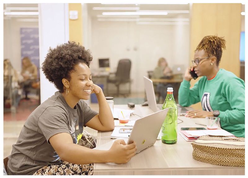 Mad Park founder Stephanie Harvey and A Touch of Speed founder Eboni Thompkins-Webber work at The Ripple Fund’s nonprofit incubator in The Cigar Factory.
