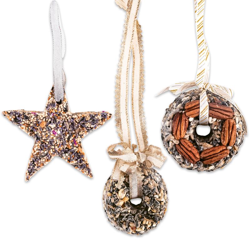 This season, why not trim an outdoor tree, serving the birds a holiday feast? Easy enough to craft with the kids, these ornaments also make excellent gifts for wildlife lovers