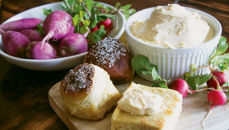 A dollop of honey butter is a surefire hit topping any old slice of bread. But take a cue from the guys at Spero, and ramp up the traditional recipe by singeing the sweet stuff first. Chef RJ Moody then adds a hint of salty miso paste, infusing the spread with mouthwatering umami flavor. While the Meeting Street eatery classically pairs their special butter with corn bread, Moody insists that it’s tasty “almost every place you’d use plain butter”—for example, under the skin of a roasted chicken or garnishing spring radishes.