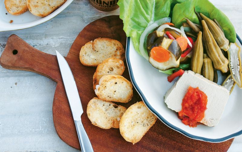 Currently, the super-smooth app is served with dilly beans, but Stewart says it’s also great with a sweet-pepper relish and pickled okra, accompanied by French fries or potato chips—or smeared on French bread slices.