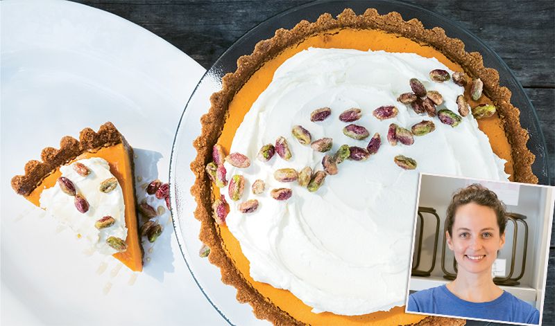 Claire Aitken didn’t plan on becoming a baker. Her first love was horses. The Durham, North Carolina, native grew up riding and majored in Equine Science at Colorado State University. She even worked with horses in Italy until she had an epiphany: “I enjoyed that industry, but I wanted it to be more of a hobby than a job.” When a friend invited Aitken to join the kitchen at a Brazilian steakhouse back in Fort Collins, she realized she was a natural and soon was put in charge of making the desserts. Today, at John’s Island’s Baker & the Farmer, she loves to use as many local ingredients as possible, as in this squash pie. “I found this fantastic Candy Roaster squash at GrowFood Carolina,” she says. “I want that squash flavor to shine, but I added the pistachios to give it a nutty flavor.” Of course, a love of pie hasn’t diminished her passion for ponies. She keeps a horse not far from the bakery on John’s Island.