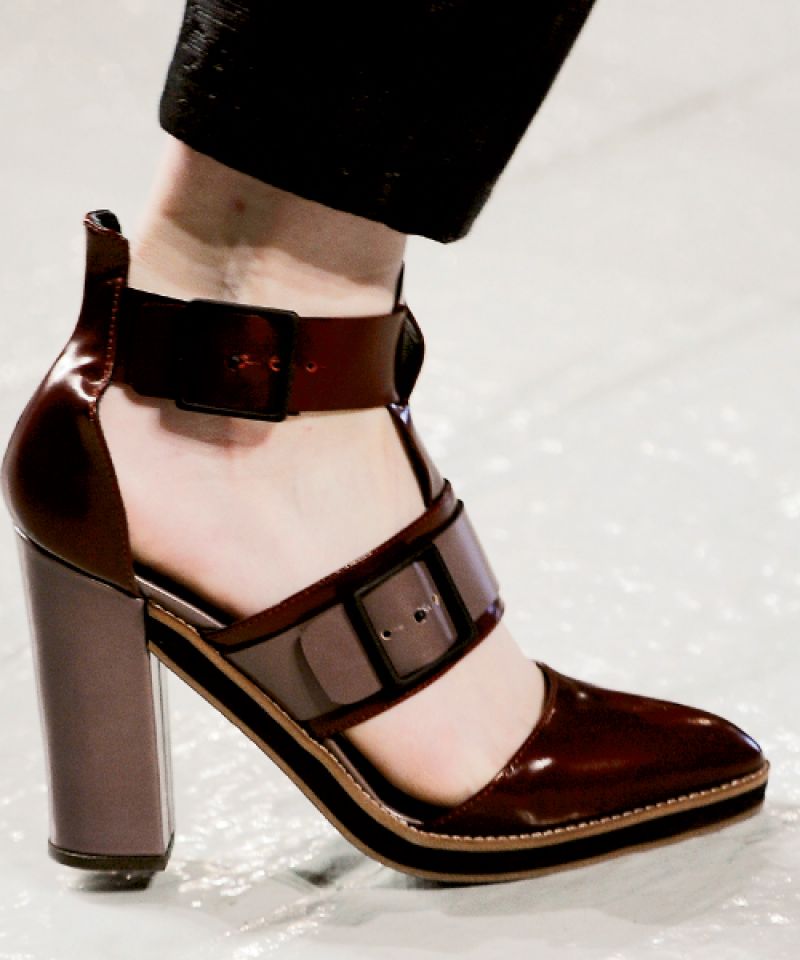 A detail view of Rebecca Taylor’s sleek patent pump from her fall 2014 runway show