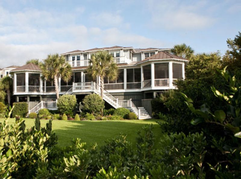 As for the latter, “I knew I wanted something that looked like Old Sullivan’s,” says Tippy. So she enlisted Chris Schmitt of Charleston’s Schmitt Walker Architects, who specializes in creating “old bones” looks with new construction. Tippy told him about her husband’s uncle’s rambling Sullivan’s Island home, how cozy it was, how all the kids and family hung out there. She also pointed out the Simmons’ house, a porch-wrapped abode on the island’s northern half and that she loved its rounded end-cap porches. She gave him a short list of prerequisites, too: Maximize the views; play up the glorious island light; marry indoor and outdoor living with deep, ample porches; don’t use a speck of drywall in the place; give generous wall space for artwork; fashion a “hers” master bath that forms a one-room getaway; and let the guest bedrooms have their own entrances outside so visitors can feel like they have private getaway suites.
