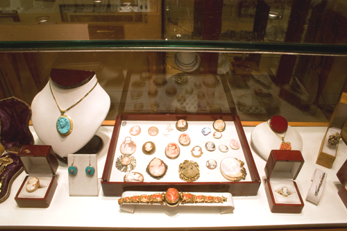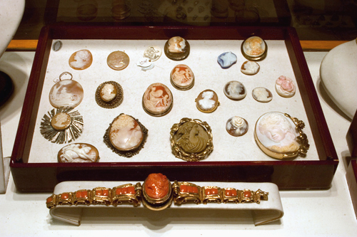 Much like the first imperial egg crafted by Carl Fabergé—a somewhat plain-looking enamel piece that opened to reveal a dazzling gem-encrusted work of art—the small King Street gallery belonging to Russian émigré Mikhail Smolkin is a treasure trove encased in a slender, unassuming storefront. Inside, cases are laden with feats of ornate craftsmanship that resemble family heirlooms: richly detailed family crests, antique-style engagement rings, and precise cameos, an all-but-lost art that requires 50 to 80 hours of painstakingly detailed work per commission. Smolkin’s flair for realistic facial proportions and dedication to old-world carving methods place him in a rarefied category of artisans—a distinction that is not lost on discerning cameo collectors.