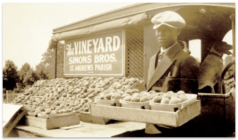 Fresh peaches from Simons Bros. Vineyard tempt passersby at a roadside market in St. Andrews Parish in this black-and-white image—from the Agricultural Society of South Carolina’s collection—estimated to have been taken in the 1930s. Georgia may be known as the “Peach State,” however, South Carolina harvests more of the stone fruit annually—in 2020, a whopping 76,500 tons, according to the US Department of Agriculture—and has done so for decades. In fact, in 1984, the South Carolina General Assembly officially named it the state fruit. While the majority of our peaches are grown in the Piedmont, Charleston has its own juicy peach history. Read more about it in David Shields’s 2018 article “A Cling of the Past”.